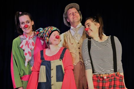 6 Clowns ziehen durch die Eutiner Innenstadt und sorgen für gute Laune für Klein und Groß.
